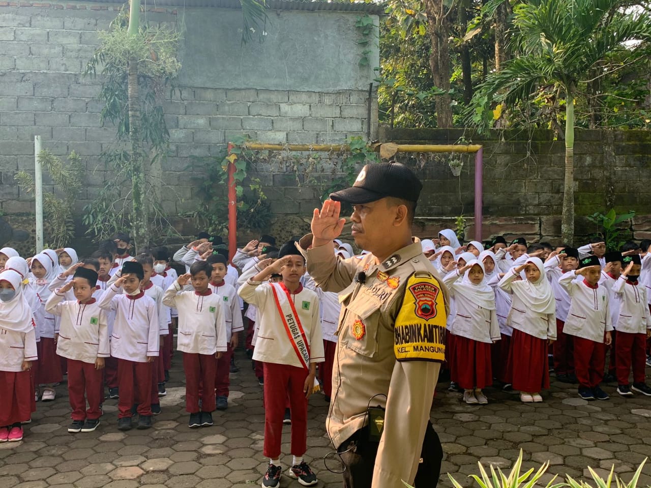 Polres Salatiga Polda Jat Ng – Bhabinkamtibmas Kelurahan Mangunsari Polsek Sidomukti Polres Salatiga, Aiptu Darmanto, berkesempatan menjadi pembina apel di MI Ma’arif Mangunsari, Kamis, 11/09/2025.