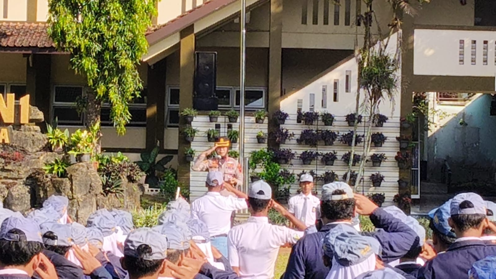 Turut hadir dalam kegiatan tersebut Kepala Sekolah SMAN 1 Salatiga Subroto, S.Pd., M.Pd., para guru, karyawan, serta seluruh siswa siswi. Hadir pula Bhabinkamtibmas Kelurahan Salatiga Aiptu Darsana.
