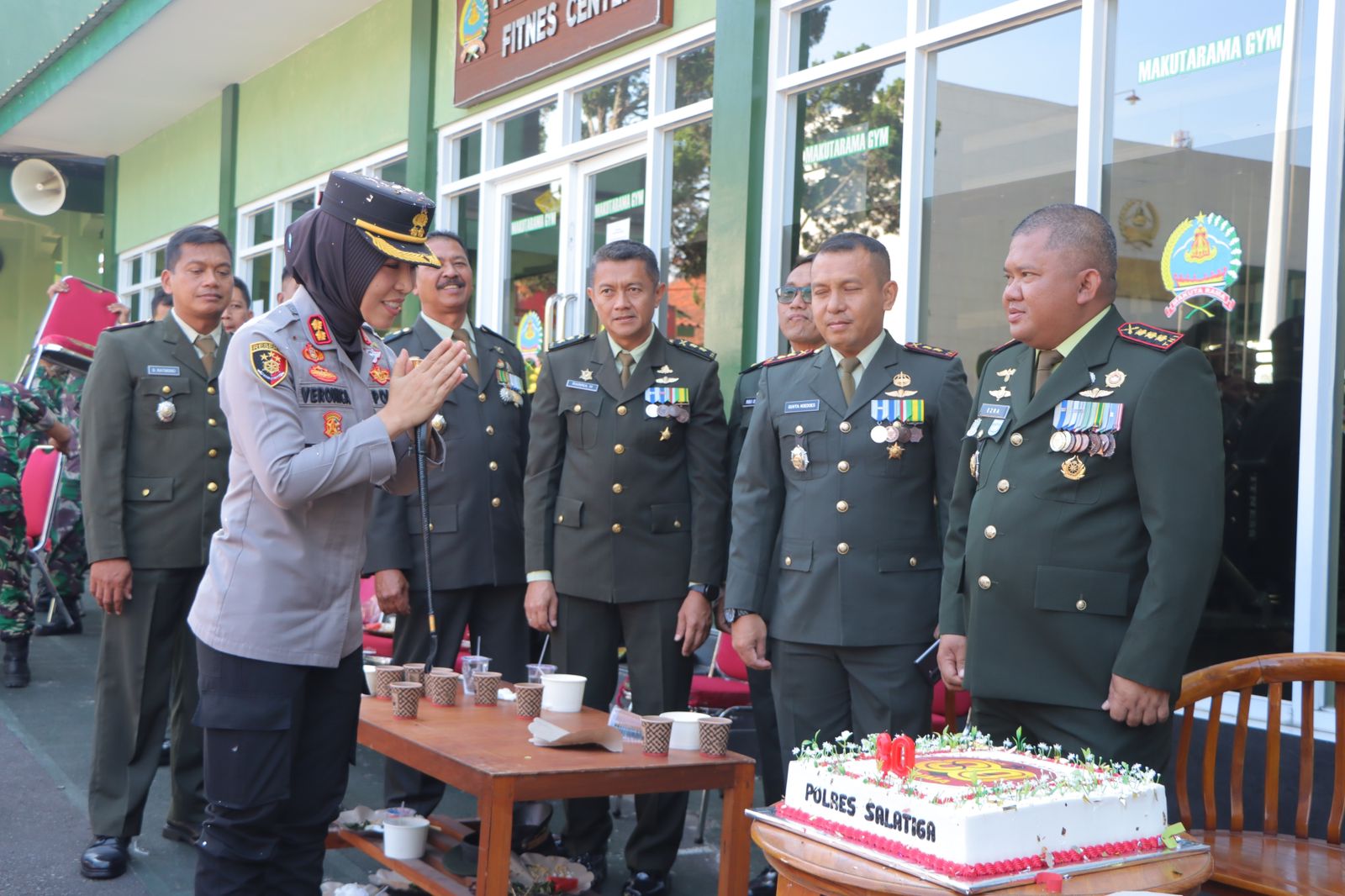 “Selamat Ulang Tahun ke-80 untuk TNI. Kami keluarga besar Polres Salatiga mengucapkan terima kasih atas sinergi dan kerja sama yang selama ini terjalin erat. TNI dan Polri adalah saudara seperjuangan yang berdiri di garda terdepan menjaga keutuhan NKRI,” ungkap AKBP Veronica, S.H., S.I.K., M.Si.