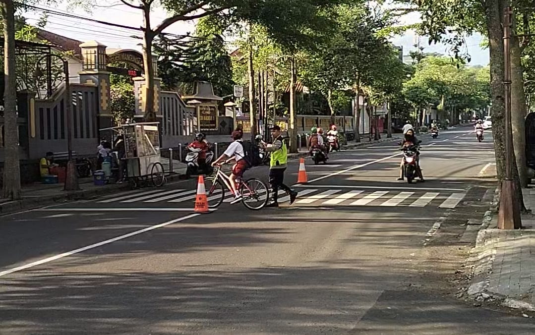Polres Salatiga Polda Jateng – Dalam rangka memberikan pelayanan kepada masyarakat di pagi hari, personel Polsek Sidomukti Polres Salatiga Polda Jawa Tengah rutin melaksanakan PH pagi, seperti terlihat saat Brigadir Dimas melakukan pengaturan arus lalu lintas dan membantu penyeberangan anak sekolah di SD Negeri Mangunsari 1 Salatiga, Senin (27/10/2025)