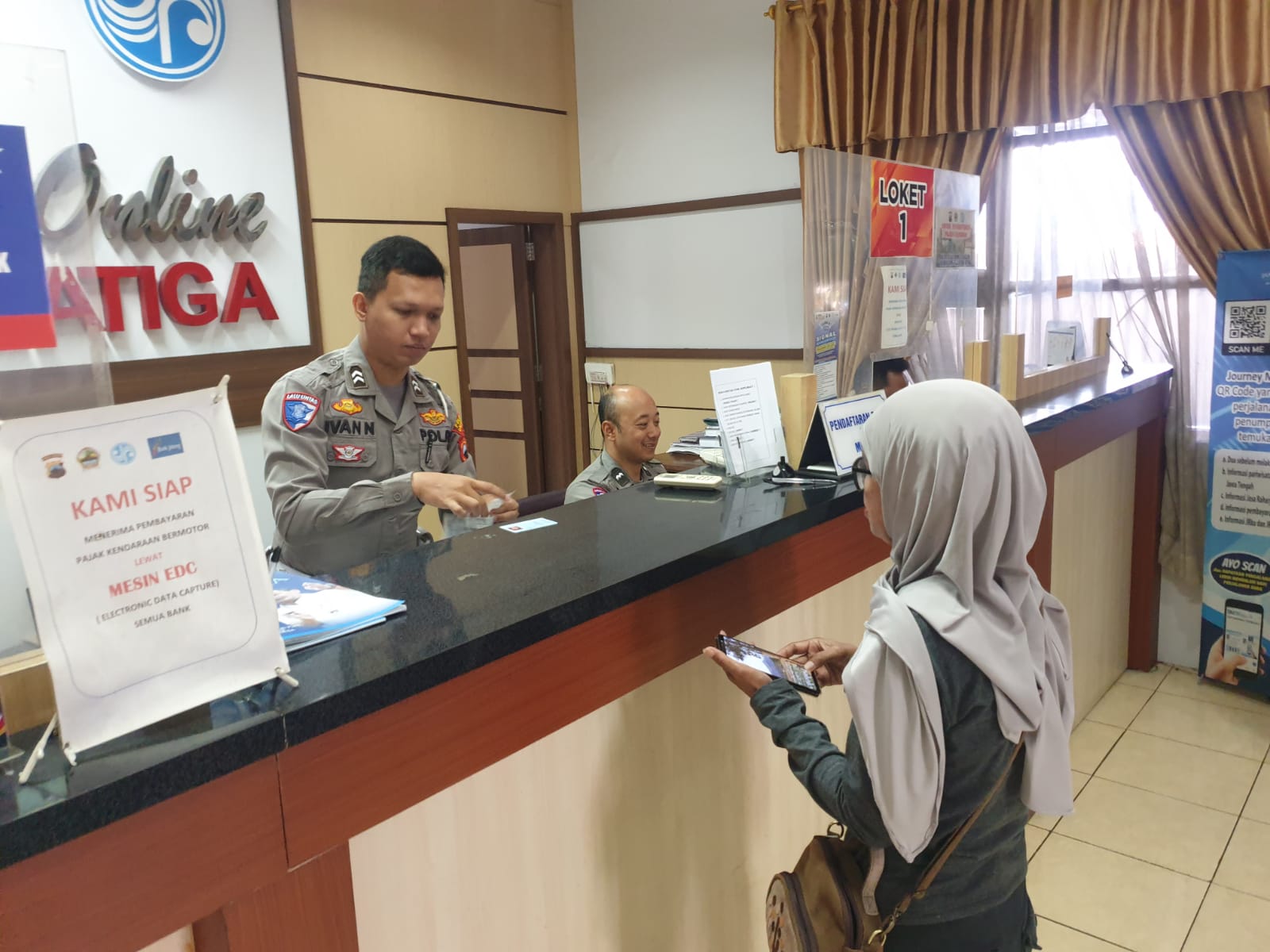Anggota Satlantas Polres Salatiga Edukasi Masyarakat Agar Tidak Bingung Saat di Loket Pelayanan