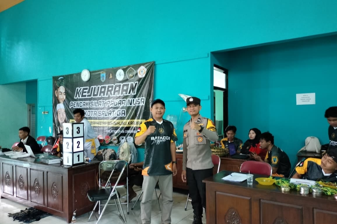 Anggota Polsek Tingkir Berikan Pengamanan Kejuaraan Kota 06 PSNU Pagar Nusa Hari Ke – 2